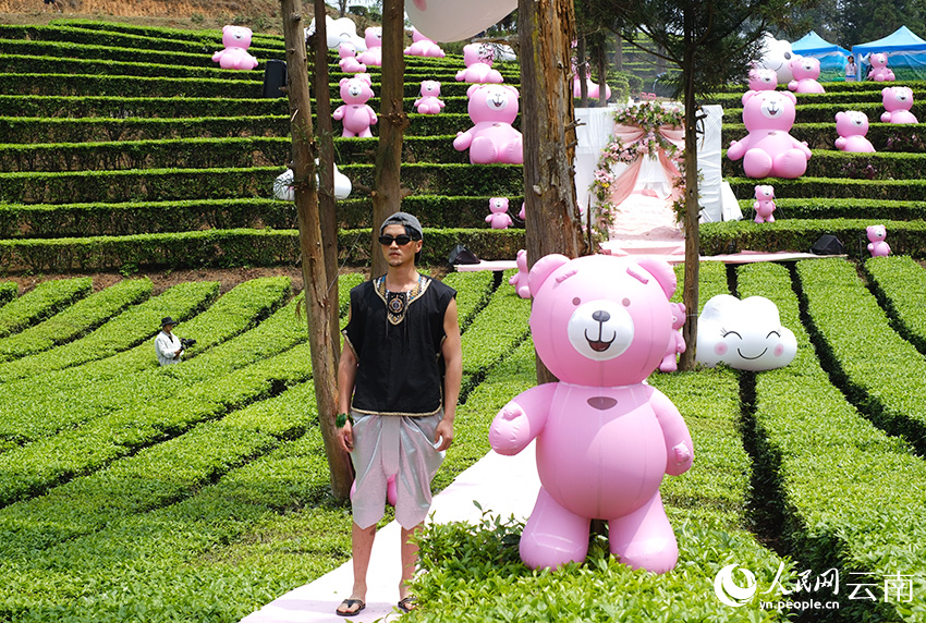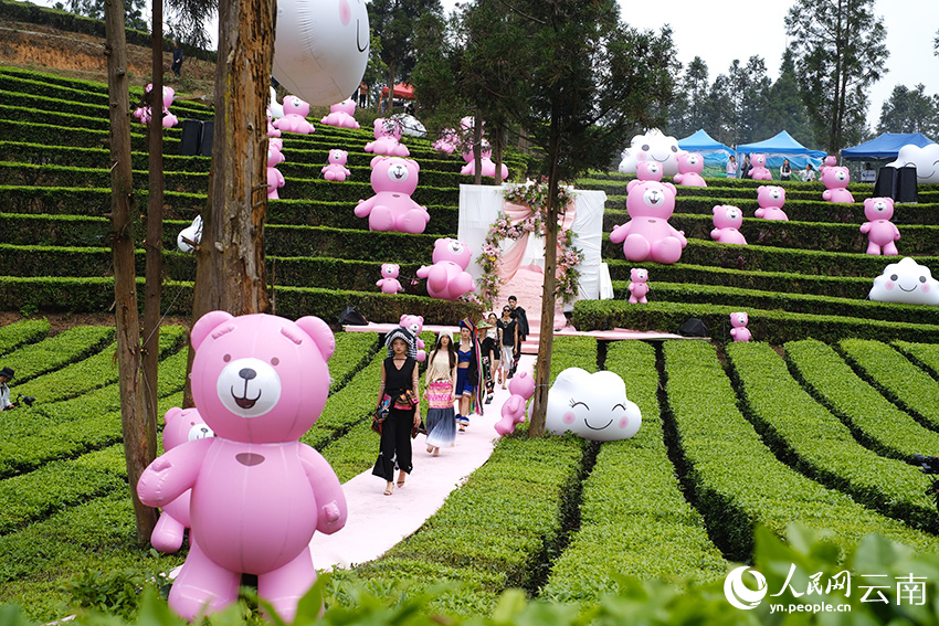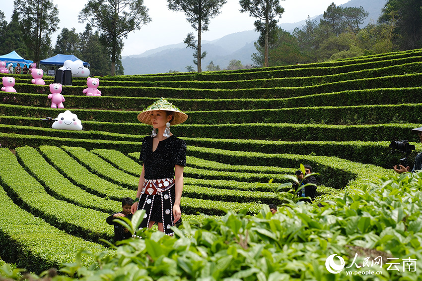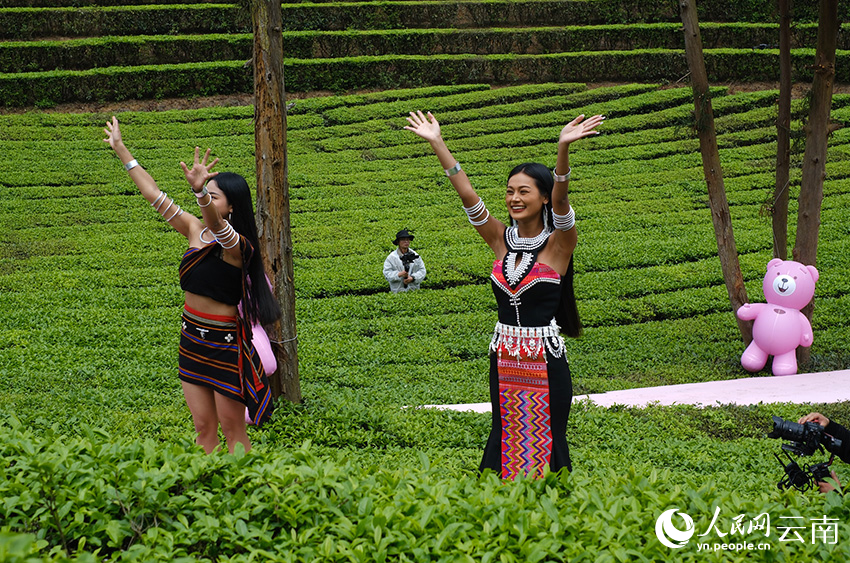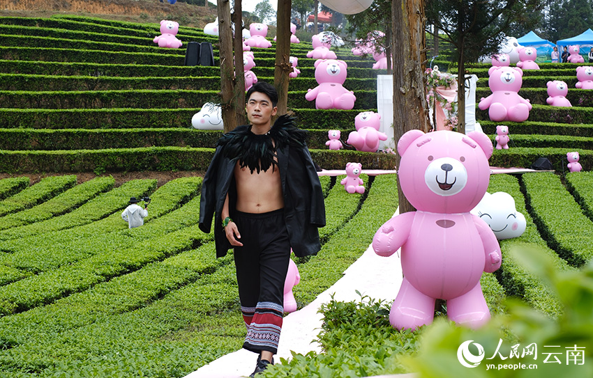 Models showcase ethnic dress on the runway in a tea garden in Mengsa town, Gengma Dai and Wa Autonomous County, Lincang city, southwest China's Yunnan Province. (People's Daily Online/Zeng Zhihui)