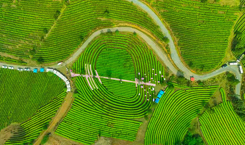 Aerial view of a tea garden in Mengsa town, Gengma Dai and Wa Autonomous County, Lincang city, southwest China's Yunnan Province. (Photo courtesy of the Publicity Department of the Communist Party of China Lincang Municipal Committee)