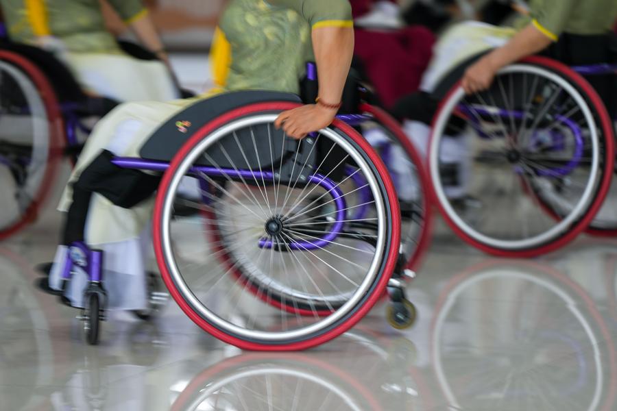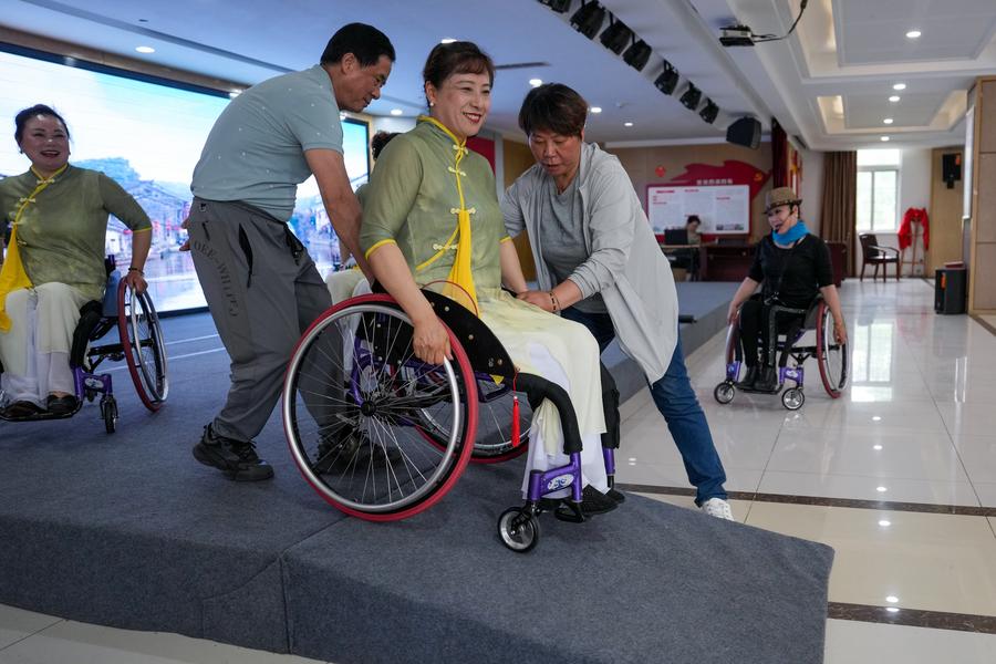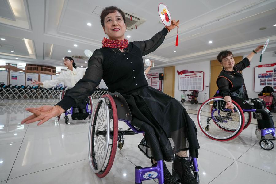 Members of a wheelchair dance team rehearse in Nanjing, east China's Jiangsu Province, April 27, 2025. (Xinhua/Li Bo)
