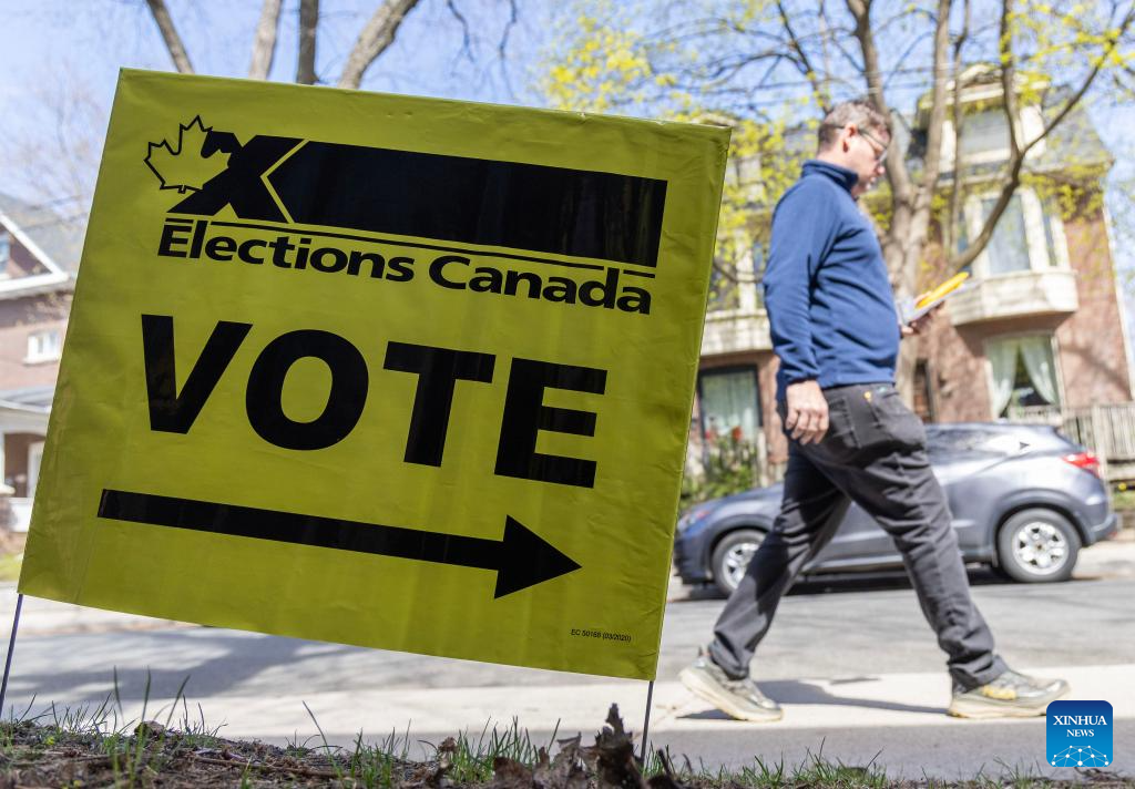 OTTAWA, April 28 (Xinhua) -- Millions of Canadians are lining up to cast their ballots on Monday as U.S. President Donald Trump weighed in on the election with a new threat of annexation of the country.