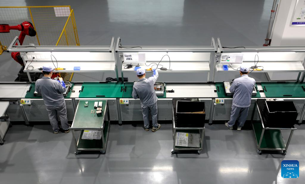 This photo taken on April 21, 2025 shows a view inside a workshop of a satellite manufacturing base in Hebi, central China's Henan Province. (Xinhua/Du Xiaoyi)