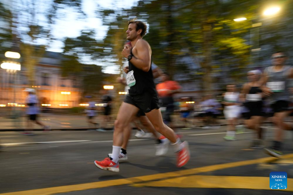 Athletes compete during the Montevideo Marathon in Montevideo, Uraguay, May 4, 2025. (Photo by Nicolas Celaya/Xinhua)