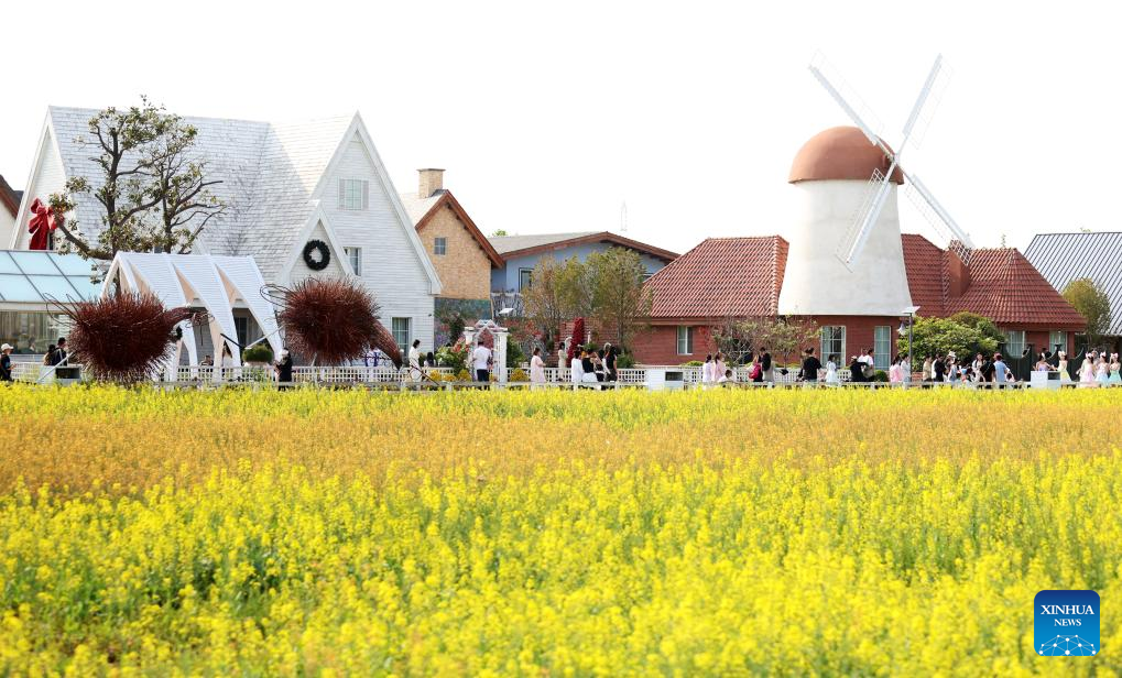 Tourists enjoy leisure time at Zuidongfeng art village in Tancheng County, east China's Shandong Province, May 4, 2025. Chinese tourists made 314 million domestic trips and spent 180.3 billion yuan (roughly 25 billion U.S. dollars) from May 1 to 5, marking 6.4 percent and 8 percent year-on-year rises respectively, according to official figures. (Photo by Zhang Chunlei/Xinhua)