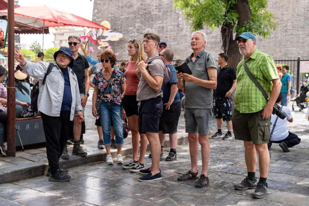 Photo taken on April 24, 2025 shows foreign travelers in Xi'an, northwest China's Shaanxi province. (Photo by Zhang Cheng/People's Daily Online)