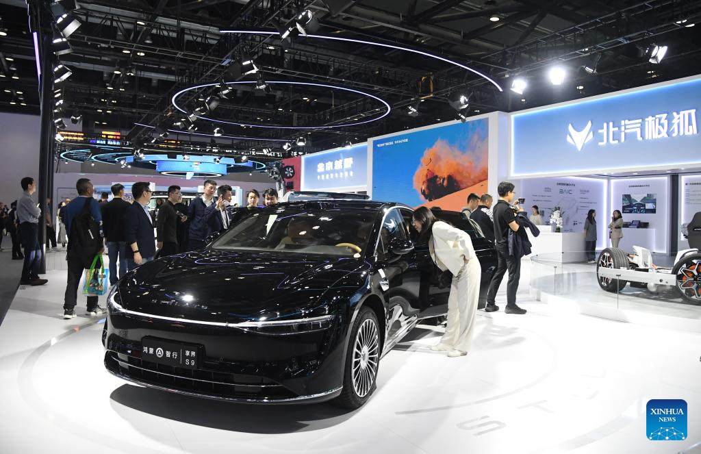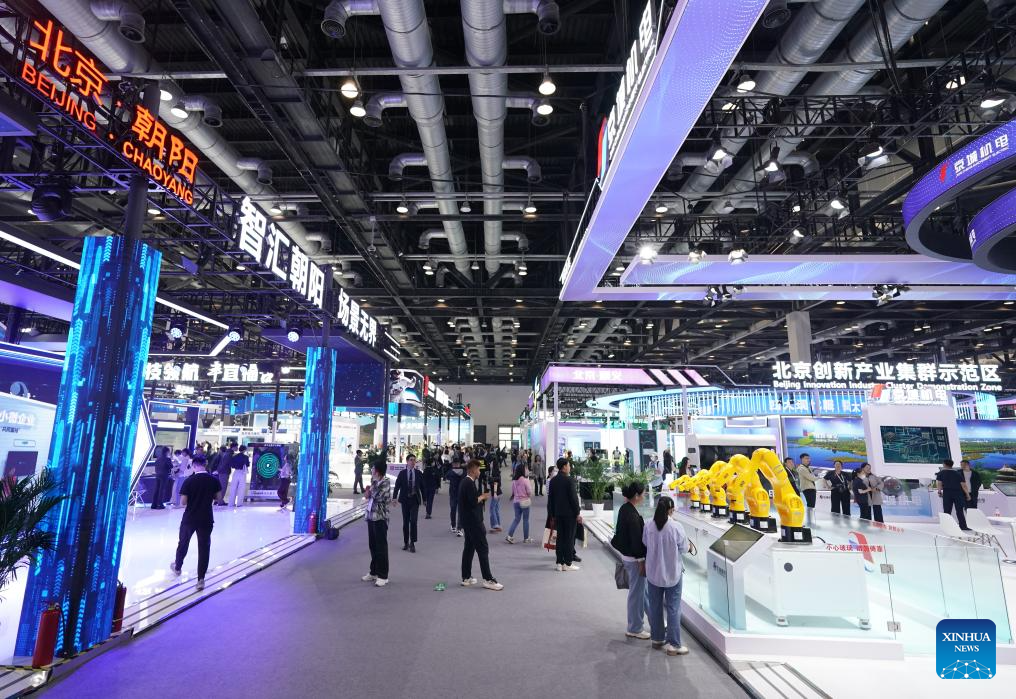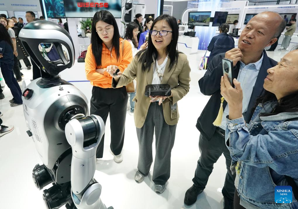 People visit the 27th China Beijing International High-tech Expo in Beijing, capital of China, May 8, 2025. The expo opened here on Thursday and will last until May 11. Boasting an exhibition area of about 50,000 square meters, the event has attracted more than 800 exhibitors from home and abroad. (Xinhua/Ren Chao)