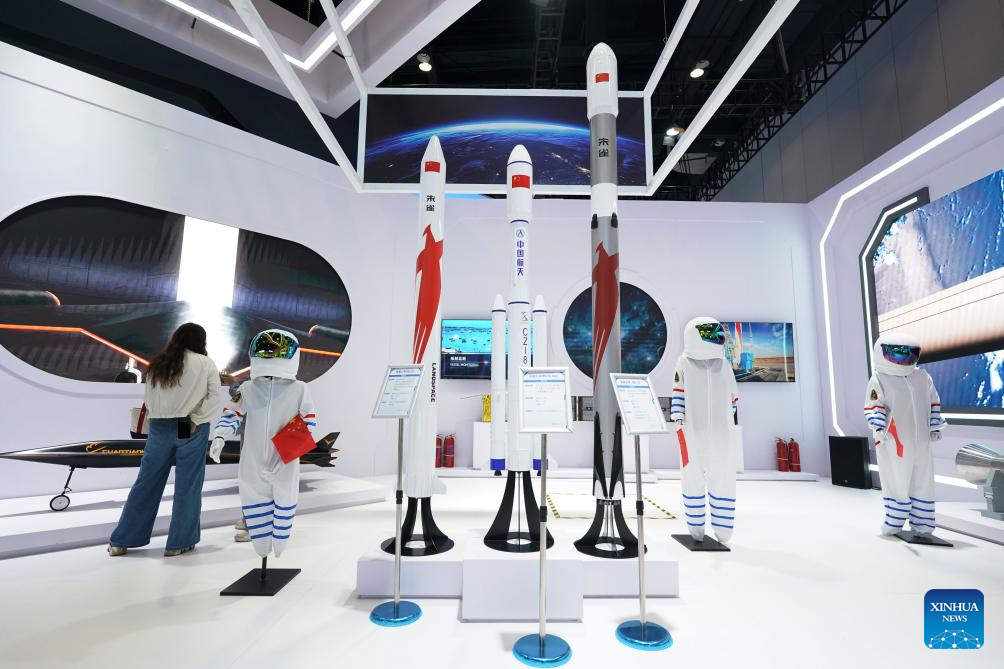 People visit the 27th China Beijing International High-tech Expo in Beijing, capital of China, May 8, 2025. The expo opened here on Thursday and will last until May 11. Boasting an exhibition area of about 50,000 square meters, the event has attracted more than 800 exhibitors from home and abroad. (Xinhua/Zhang Chenlin)
