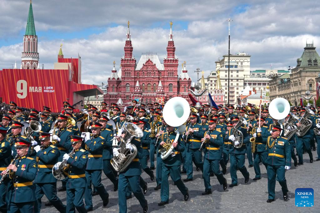 A military band prepares to attend a grand parade marking the 80th anniversary of the victory in the Soviet Union's Great Patriotic War in Moscow, Russia, May 9, 2025. (Xinhua/Lai Xiangdong)