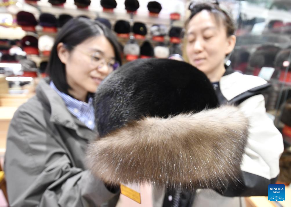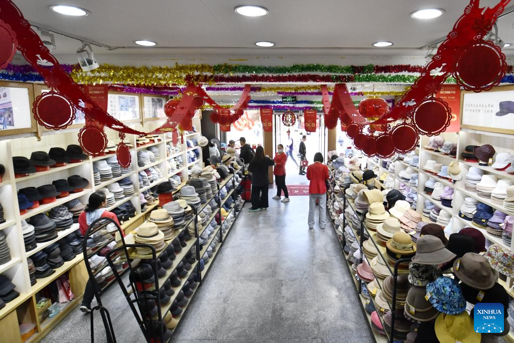 People shop for hats at a Shengxifu hat store in Beijing, capital of China, April 22, 2025.
