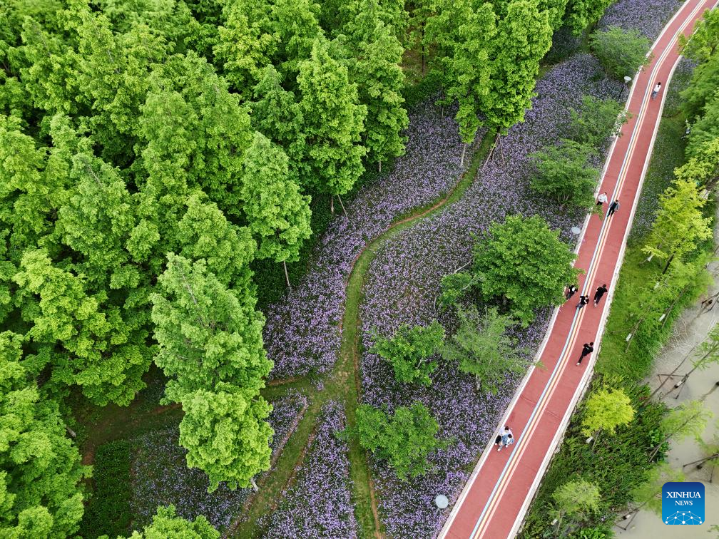 Tourists enjoy flowers at a scenic area in Zaozhuang City, east China's Shandong Province, May 11, 2025. (Photo by Li Zhijun/Xinhua)