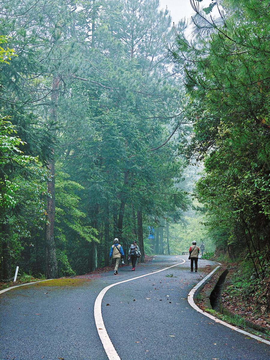 A team of bird-watchers participating in the fourth Nanling Bird-watching Carnival walk on a road running through the Nanling National Nature Reserve during the event held from April 26 to 29. MA ZHIYU/FOR CHINA DAILY