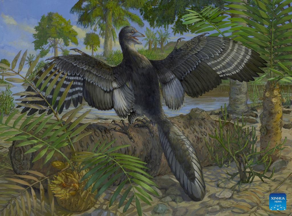 This undated image shows a restoration drawing of the "Chicago Archaeopteryx" based on a specimen collected by the Field Museum of Natural History in Chicago, the United States. (Chinese Academy of Sciences/Handout via Xinhua)