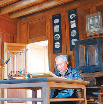 Yin Xianzhang browses old photos at his home in Heshun town, Tengchong, a county-level city administered by Baoshan city, southwest China's Yunnan Province. (People's Daily Online/Zhuang Zhibin)