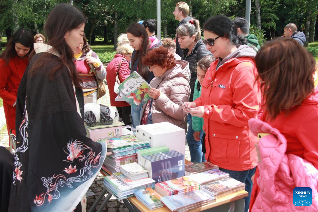 People enjoy the "Peony Festival - a Meeting of Cultures" event in Sofia, Bulgaria, on May 17, 2025. The event took place along the peony garden in Sofia's South Park. The garden was created last autumn with plants donated by China's Heze City, known as China's Peony Capital. (Photo by Marian Draganov/Xinhua)