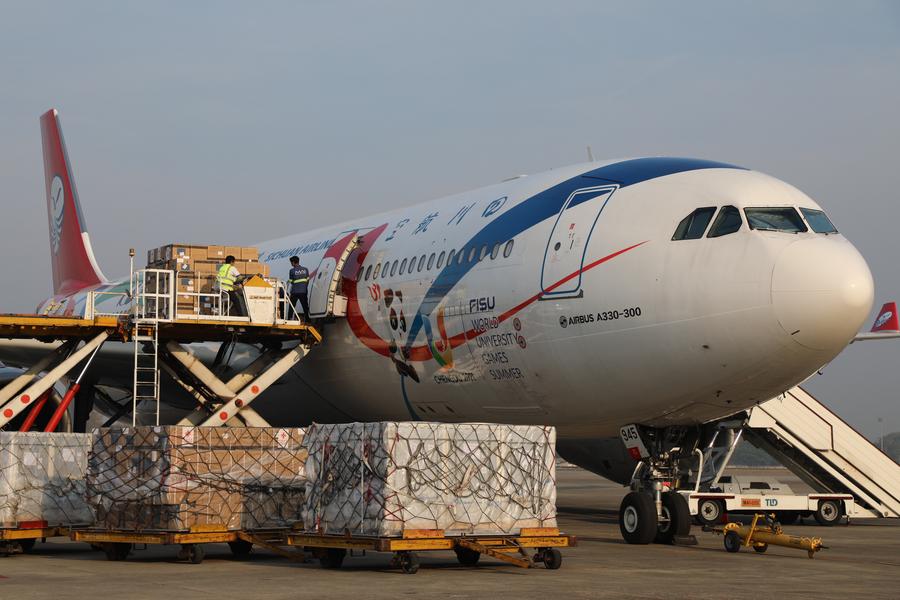 This photo taken on Jan. 19, 2023 shows China-aided COVID-19 vaccines arriving at the Yangon International Airport in Yangon, Myanmar. (The Chinese Embassy in Myanmar/Handout via Xinhua)