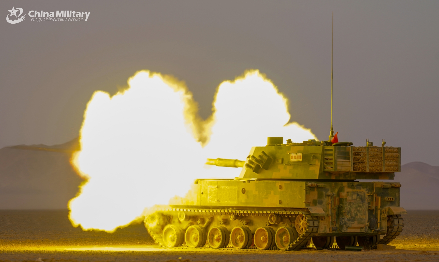 A PLZ-07 122mm self-propelled howitzer system attached to an artillery detachment of a brigade with the army under the Chinese PLA Eastern Theater Command fires at mock targets during a live-fire training exercise in early May, 2025. (eng.chinamil.com.cn/Zhang Mao)