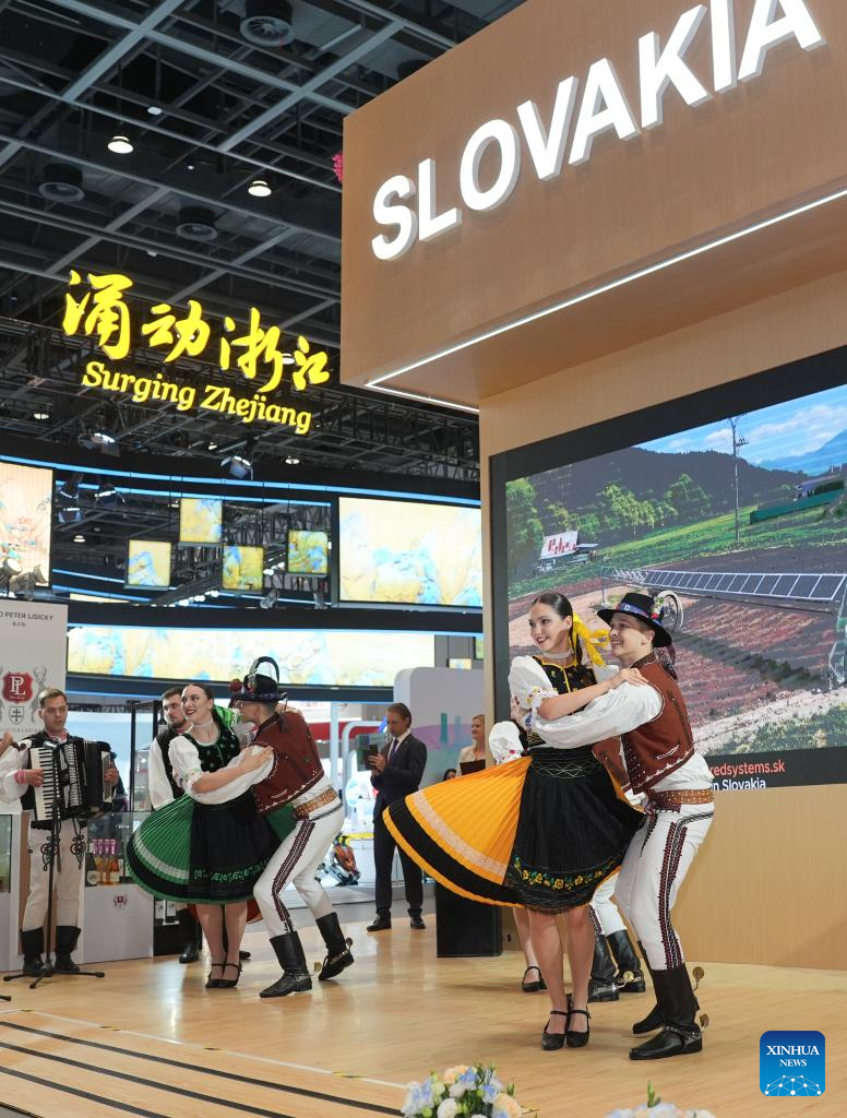 Dancers from Slovakia perform during the 4th China-CEEC Expo & International Consumer Goods Fair in Ningbo, east China's Zhejiang Province, May 22, 2025. With over 8,000 featured products on display, from traditional goods like wines and cheese to cutting-edge varieties like VR glasses, the 4th China-CEEC Expo & International Consumer Goods Fair unveiled its curtain on Thursday, unleashing vast cooperation potential between China and Central and Eastern European Countries (CEEC). The expo, running from Thursday to Sunday in Ningbo, has attracted 435 enterprises from 14 CEEC countries and nine other countries, including the UK, France, Germany and Italy. (Xinhua/Huang Zongzhi)