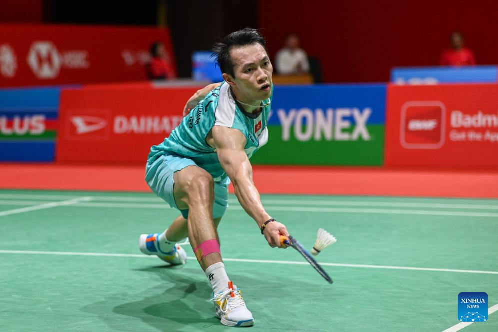 Ng Ka Long Angus of China's Hong Kong hits a return during the men's singles quarterfinal against Li Shifeng of China at 2025 Malaysia Masters badminton tournament in Kuala Lumpur, Malaysia, May 23, 2025. (Photo by Chong Voon Chung/Xinhua)