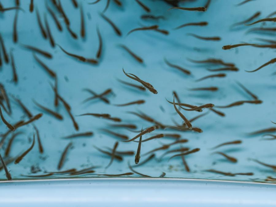 This photo shows the fry of second-filial-generation Sichuan taimen at a fish proliferation and release station operated by a company under PowerChina Hydropower Development Group Co., Ltd. in Barkam City of Aba Tibetan and Qiang Autonomous Prefecture, southwest China's Sichuan Province, May 18, 2025. China has succeeded in large-scale artificial breeding of Sichuan taimen, an endangered fish species under first-class protection of the nation, the Heilongjiang River Fisheries Research Institute of the Chinese Academy of Fishery Sciences said on May, 19. (Xinhua/Wang Xi)