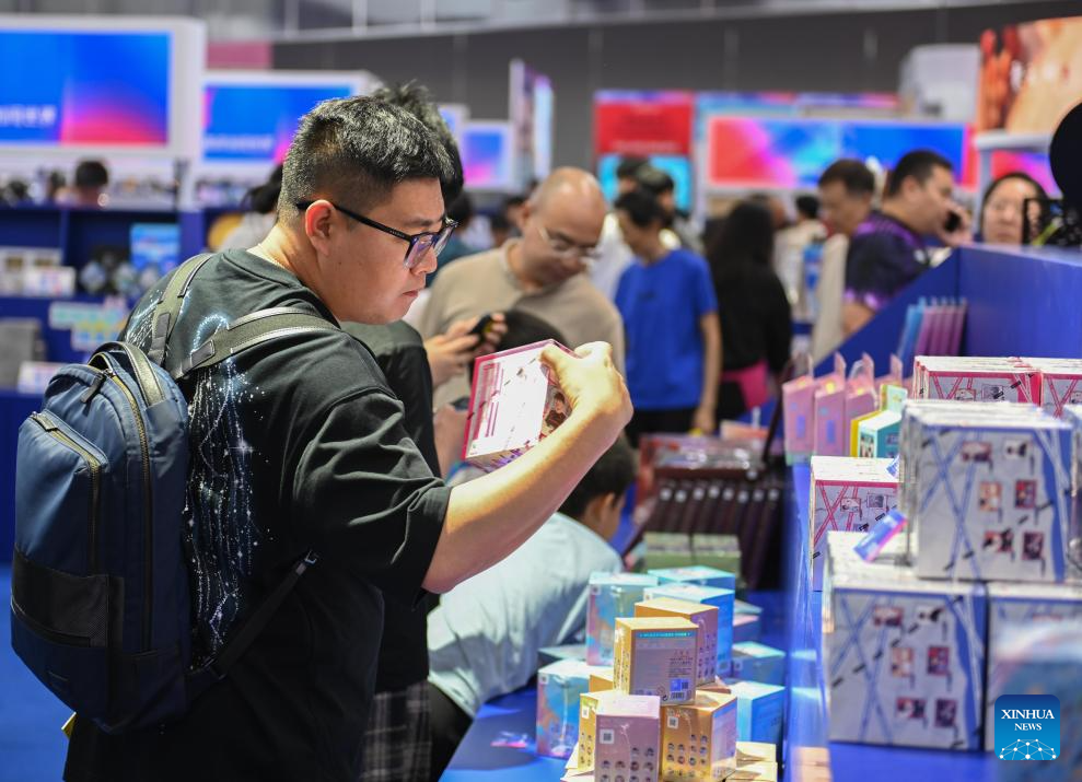 Visitors purchase products at the 21st China (Shenzhen) International Cultural Industries Fair in Shenzhen, south China's Guangdong Province, May 23, 2025. The 21st China (Shenzhen) International Cultural Industries Fair opened Thursday in the southern Chinese metropolis of Shenzhen, offering an artificial intelligence (AI) exhibition area for the first time.
