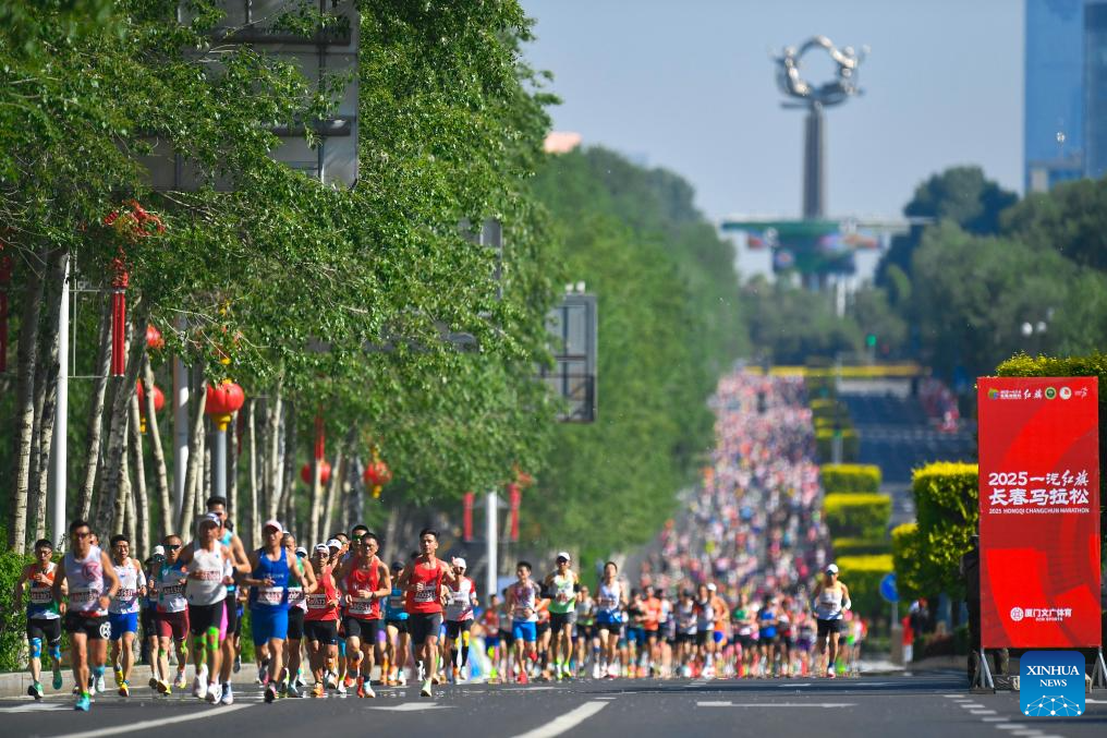 Runners compete during the 2025 Hongqi Changchun Marathon in Changchun, northeast China's Jilin Province, on May 25, 2025. (Xinhua/Xu Chang)