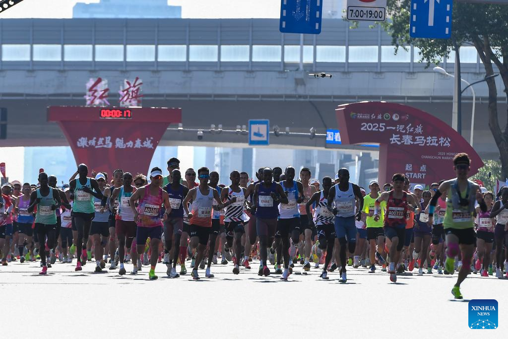 Runners compete during the 2025 Hongqi Changchun Marathon in Changchun, northeast China's Jilin Province, on May 25, 2025. (Xinhua/Zhang Nan)