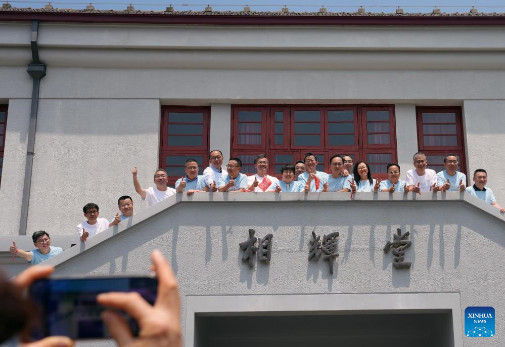 Alumni pose for photos on the campus of the Fudan University in Shanghai, east China, May 24, 2025. Founded in 1905, Fudan University is a comprehensive, research-oriented university based in Shanghai. (Xinhua/Liu Ying)