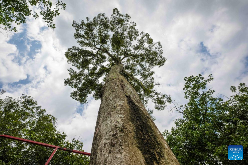 A durian tree is pictured in Baoting Li and Miao Autonomous County, south China's Hainan Province, May 26, 2025. In recent years, Baoting Li and Miao Autonomous County in Hainan Province has vigorously developed its durian planting industry, with the cultivation area continuously expanding. By the end of 2024, the durian planting area in Baoting had exceeded 666.7 hectares. The growing durian industry has become a new growth point for the local economy and a new support for rural revitalization. (Xinhua/Pu Xiaoxu)