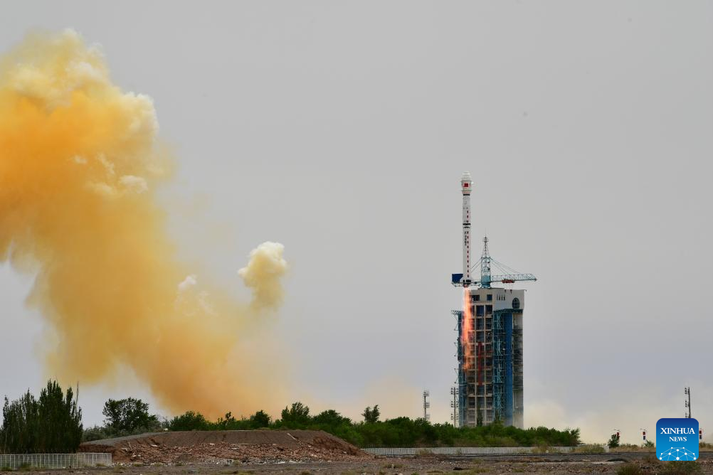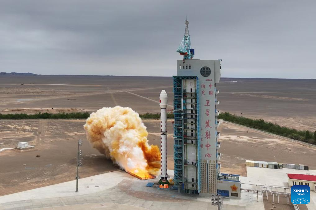 A Long March-4B carrier rocket carrying a new satellite, Shijian-26, blasts off from the Jiuquan Satellite Launch Center in northwest China on May 29, 2025. The satellite entered the preset orbit successfully. (Photo by Wang Jiangbo/Xinhua)