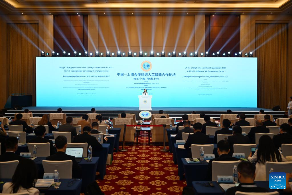 Guests attend the China-Shanghai Cooperation Organization (SCO) Artificial Intelligence (AI) Cooperation Forum in north China's Tianjin, May 29, 2025.