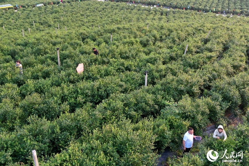 Photo shows a blueberry planting base in Pogan township, Dongxiang district, Fuzhou city, east China's Jiangxi Province. (People's Daily Online/Shi Yu)