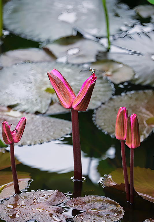 Both the twin-pistil lotus and twin lotus flowers require precise conditions for water temperature, sunlight and water quality. Their delicate beauty, however, is short-lived, lasting only six to seven days and blooming each morning between 6 a.m. and 9 a.m.