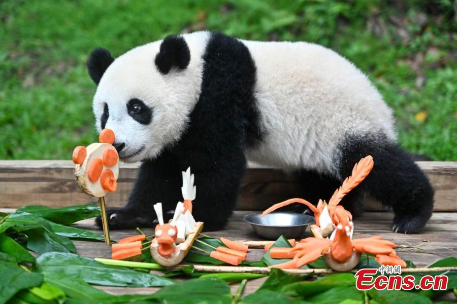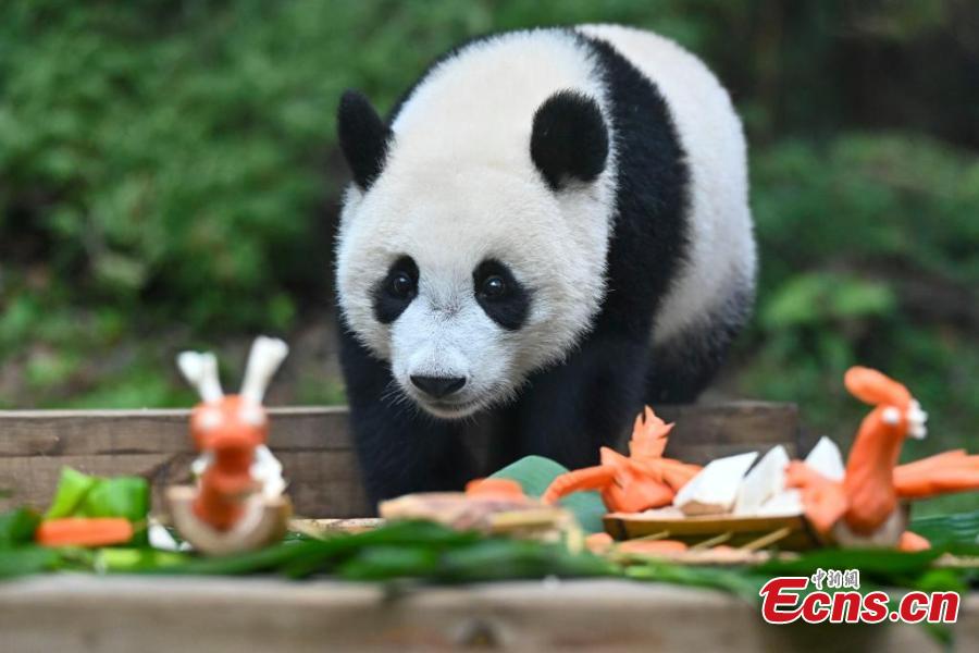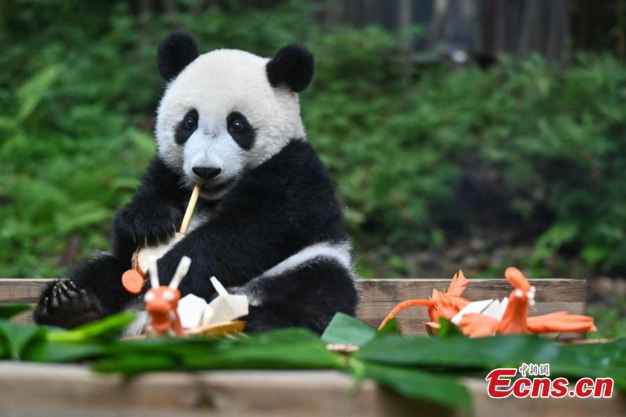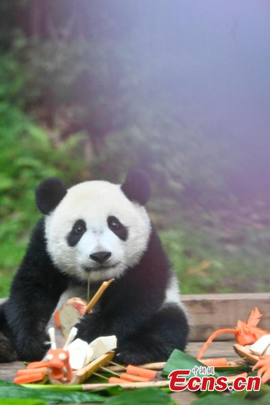 Giant pandas enjoy special treat for Dragon Boat Festival