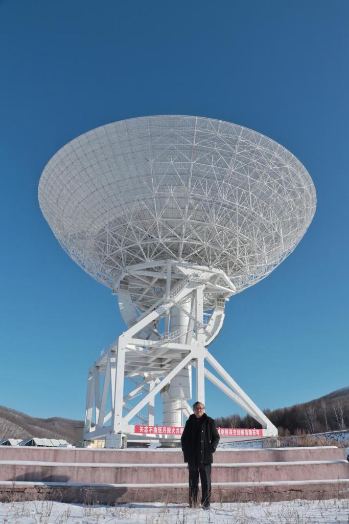 This file photo taken in 2020 shows Liu Jiaxing posing for a photo during his visit to the Jiamusi Deep Space Station in Jiamusi, northeast China's Heilongjiang Province. (Xinhua)