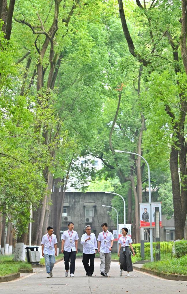 Liu Jiaxing (C) chats with young researchers at a research institute of China Electronics Technology Group Corporation in Chengdu, southwest China's Sichuan Province, May 21, 2025. (Xinhua/Liu Kun)