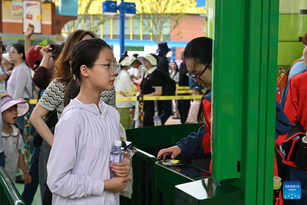 Visitors have their access verified by a facial recognition device at the entrance to the LEGOLAND Shanghai Resort in Shanghai, east China, May 31, 2025. The resort began internal proof and trial operations Saturday, and is set to officially open to the public on July 5. (Xinhua/Chen Aiping)