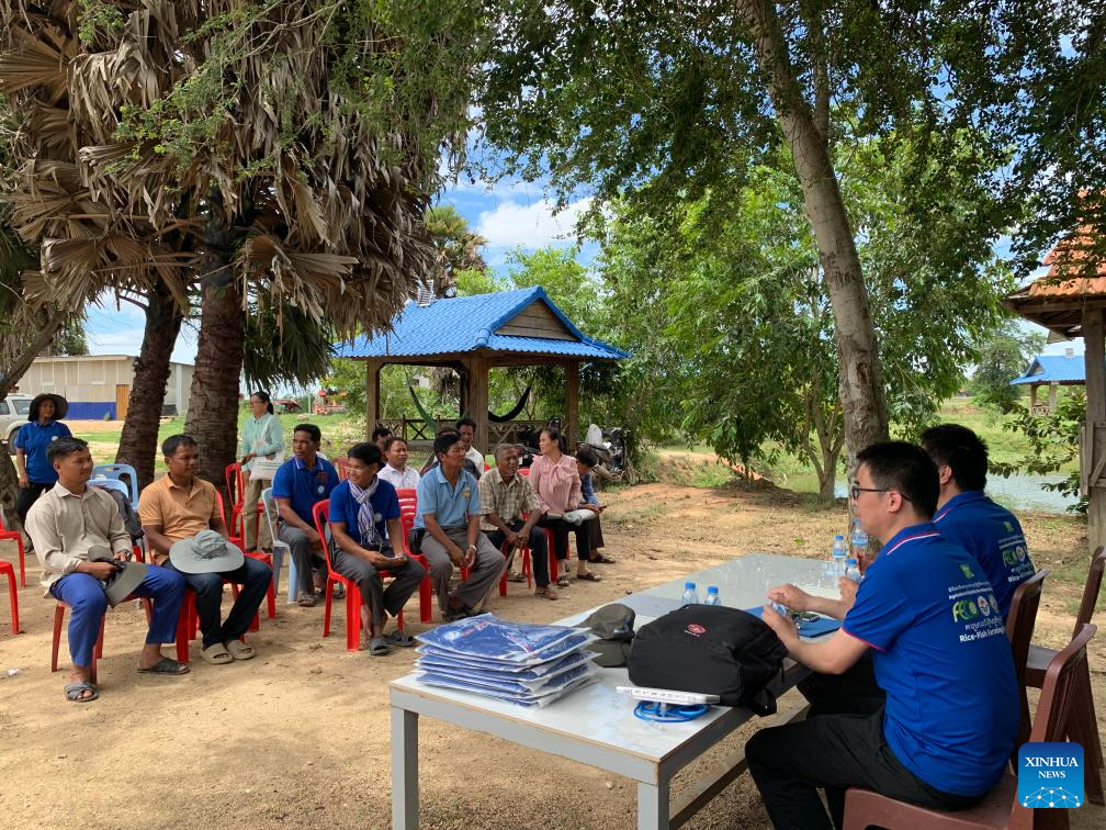 Experts from Shanghai Ocean University provide training for Cambodian farmers in Takeo province, Cambodia on May 31, 2025. (Photo by Van Pov/Xinhua)