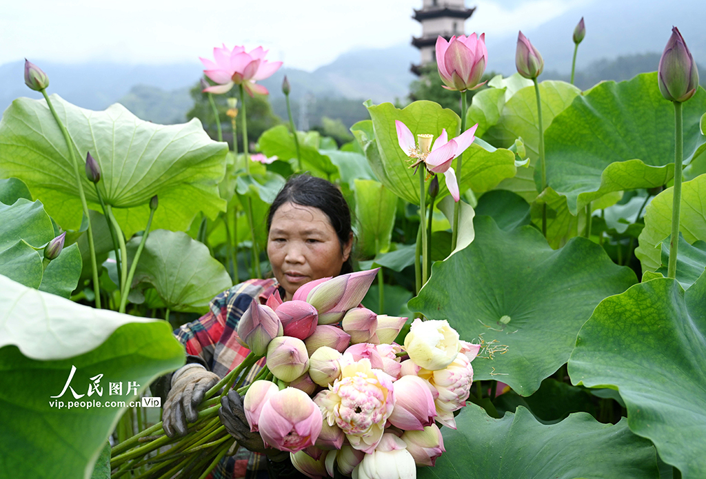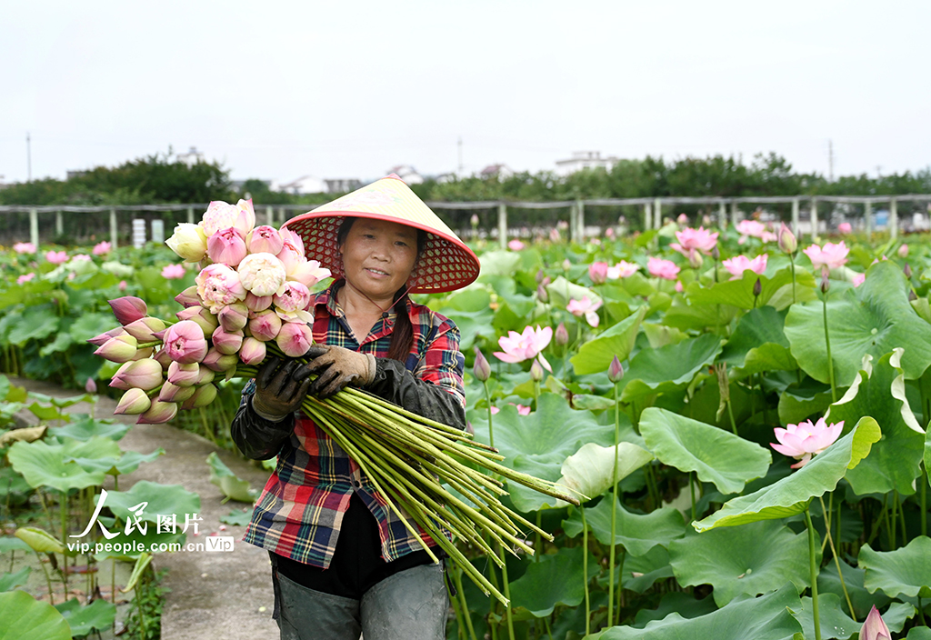 Fresh-cut lotus flowers from Zhejiang Province are in high demand. (People's Daily Online/Jian Cheng)