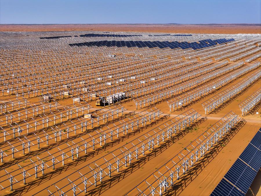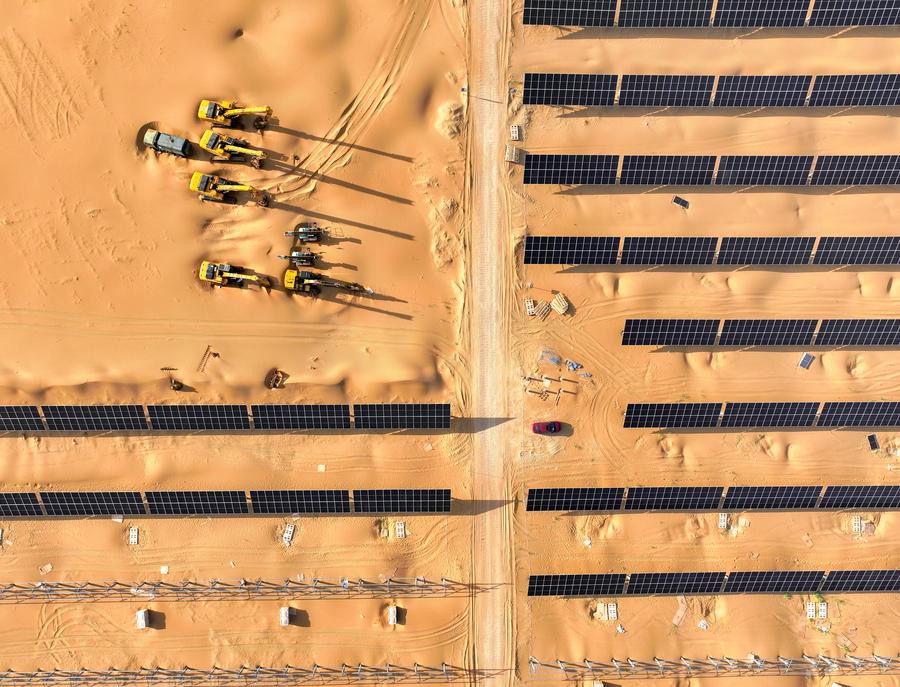In deserts of Kubuqi and Ulan Buh, the sand control model with photovoltaic projects has been widely implemented, transforming stretches of sandy terrain into vast "blue seas" brimming with green energy.