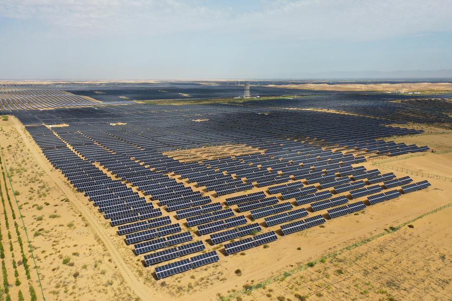 Photovoltaic projects transform sandy terrain into "blue seas" in north China's deserts