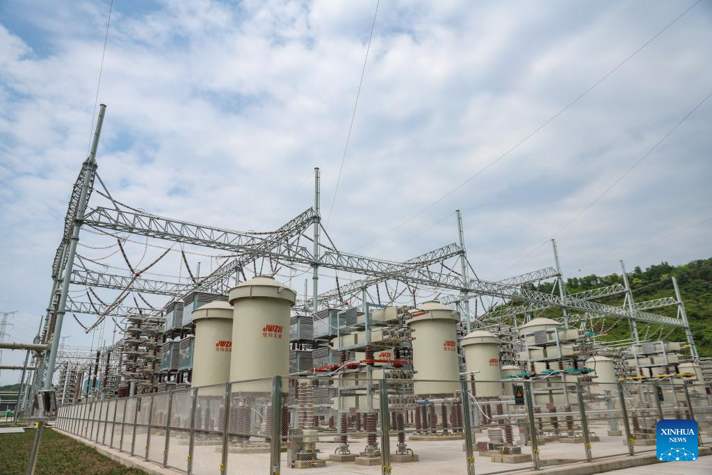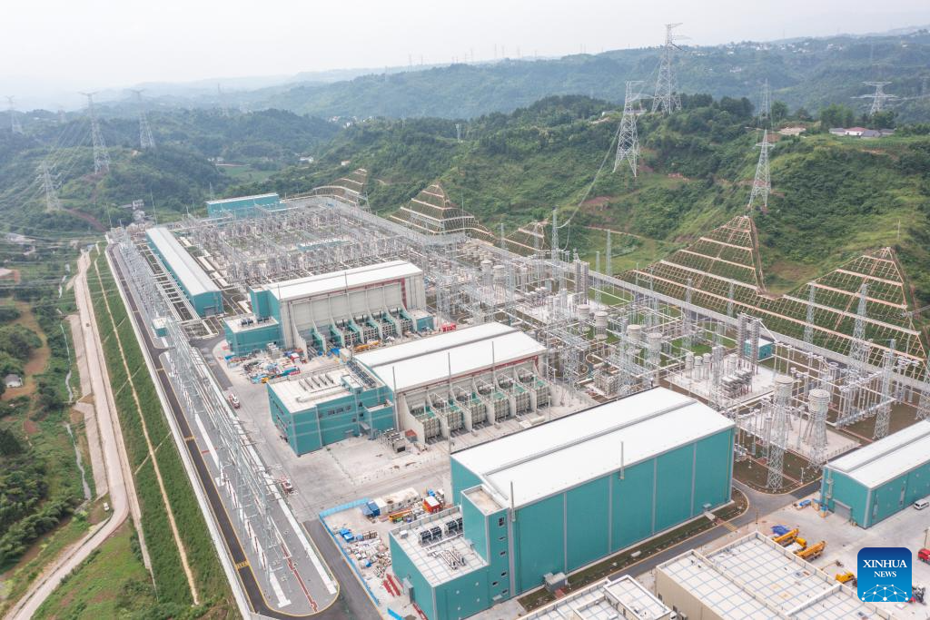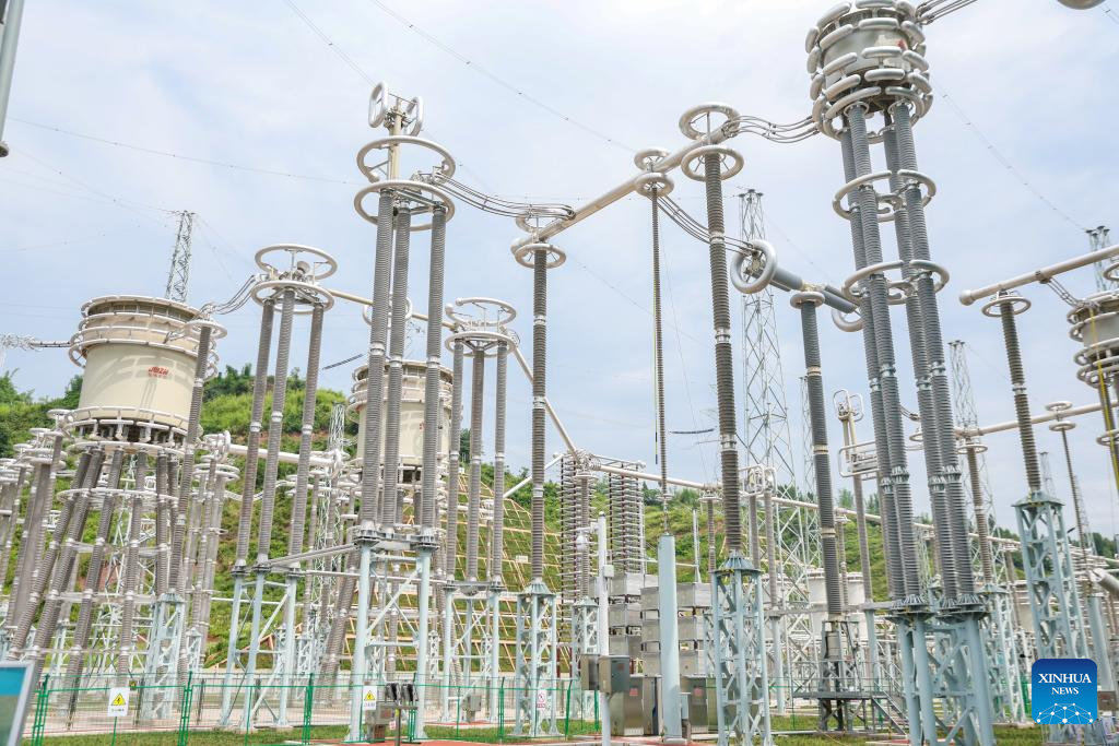 This photo shows the Yubei converter station of the Hami-Chongqing ±800 kV ultra-high voltage direct current transmission project, in southwest China's Chongqing Municipality, June 10, 2025. The State Grid Corporation of China on Tuesday announced the operation of the ±800 kV ultra-high voltage direct current transmission project linking eastern Xinjiang's Hami with southwest China's Chongqing Municipality.