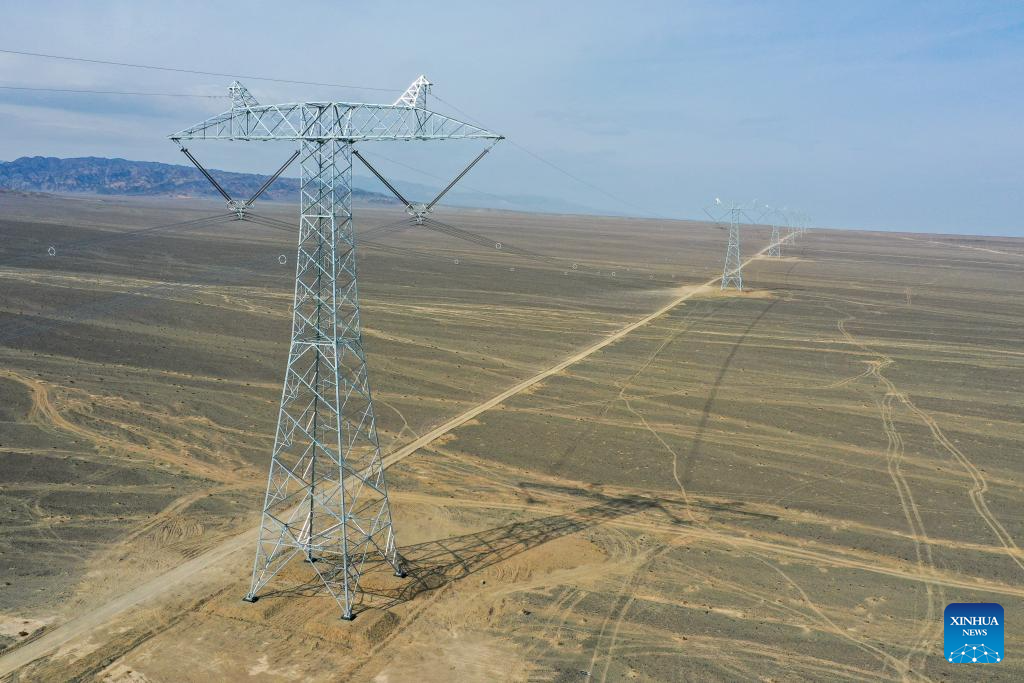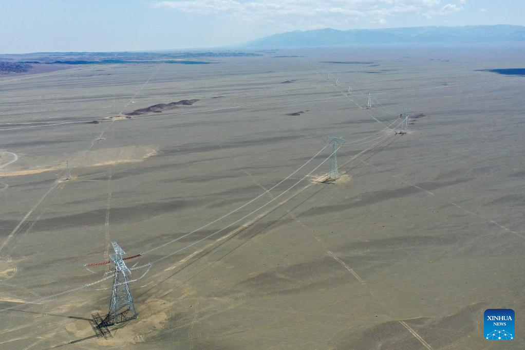 This marks China's third major project to transmit electricity from energy-rich Xinjiang Uygur Autonomous Region to other parts of the country. (Photo by Zhang Guipeng/Xinhua)