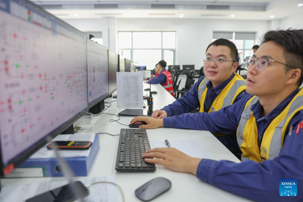 Staff members work at the main control room at the Barkol converter station, the sending end of the Hami-Chongqing ±800 kV ultra-high voltage direct current transmission project, in Hami, northwest China's Xinjiang Uygur Autonomous Region, June 10, 2025. The State Grid Corporation of China on Tuesday announced the operation of the ±800 kV ultra-high voltage direct current transmission project linking eastern Xinjiang's Hami with southwest China's Chongqing Municipality.