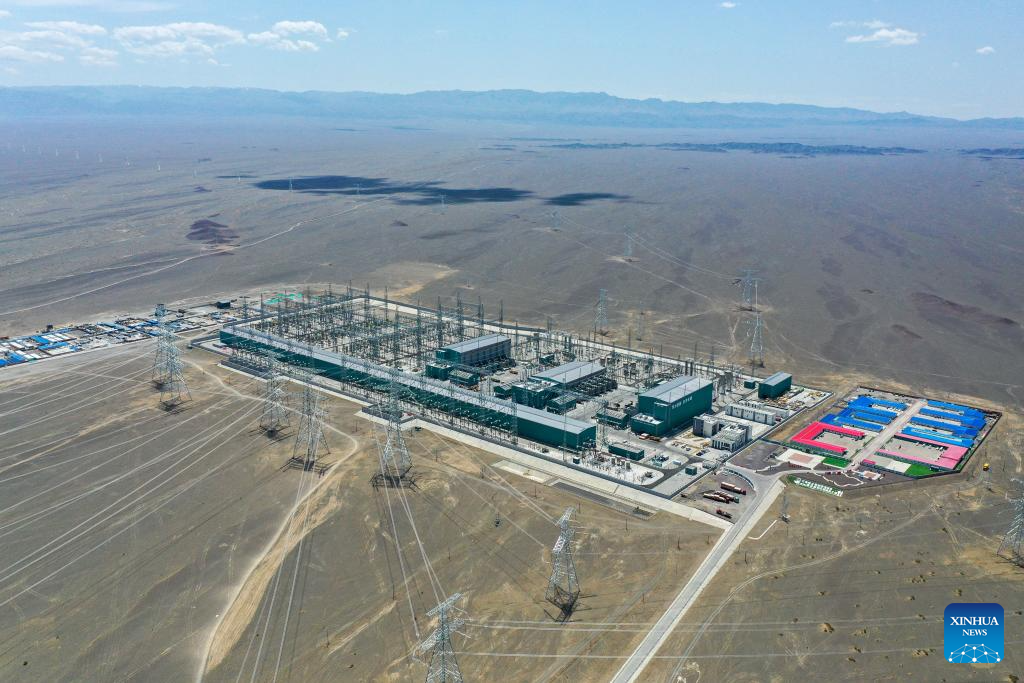 An aerial drone photo shows the Barkol converter station, the sending end of the Hami-Chongqing ±800 kV ultra-high voltage direct current transmission project, in Hami, northwest China's Xinjiang Uygur Autonomous Region, June 10, 2025. The State Grid Corporation of China on Tuesday announced the operation of the ±800 kV ultra-high voltage direct current transmission project linking eastern Xinjiang's Hami with southwest China's Chongqing Municipality.