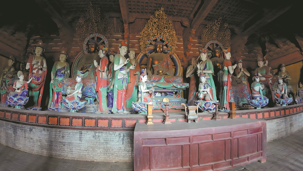 The painted Buddha sculptures in the temple. (Zhu Xingxin/China Daily)
