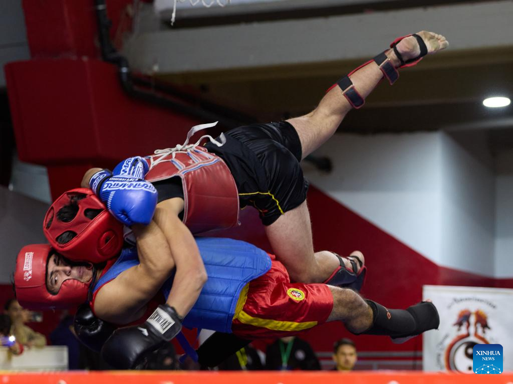 Athletes compete during the National Wushu Championships of Argentina in Buenos Aires, Argentina, on June 15, 2025. (Xinhua/Meng Dingbo)