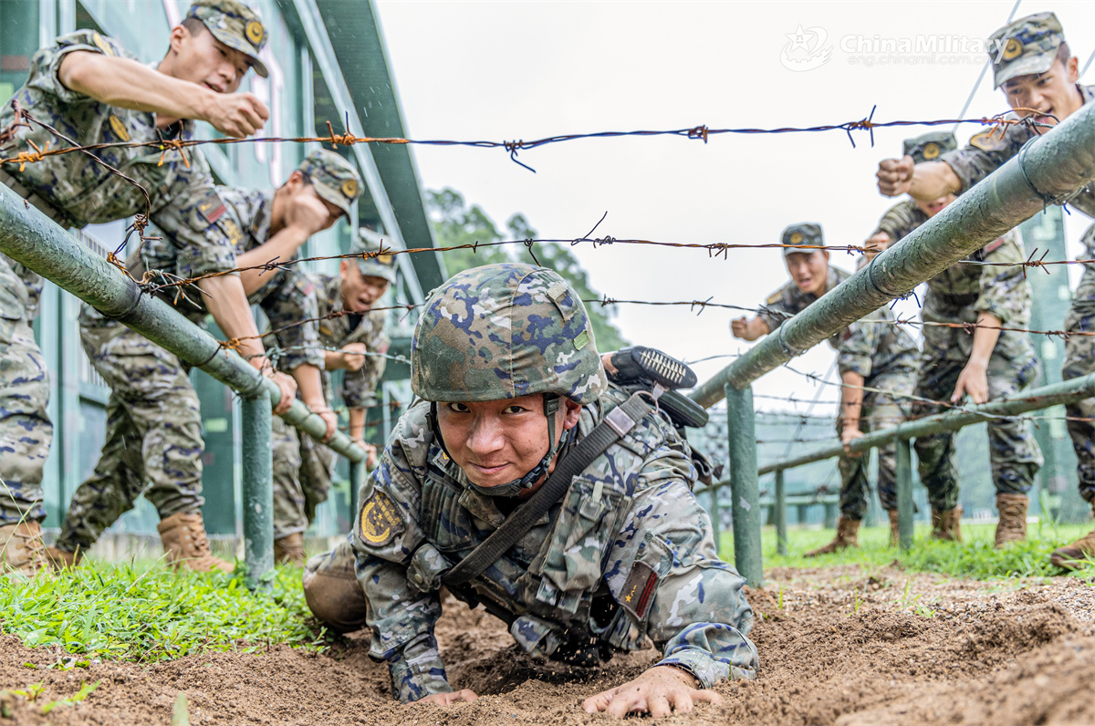 Soldiers assigned to a mobile detachment of the Chinese People's Armed Police (PAP) Guangxi Corps crawl through obstacles during a multi-subject physical exercise on June 10, 2025. (eng.chinamil.com.cn/Photo by Liu Ming)