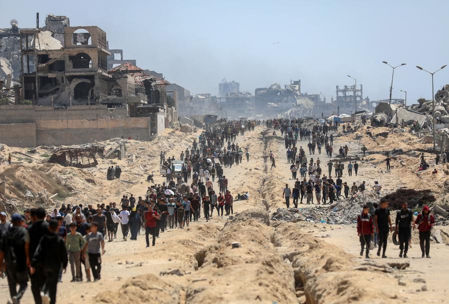 Palestinians are seen in the Sudaniya area, northern Gaza City, on June 12, 2025. (Photo by Rizek Abdeljawad/Xinhua)