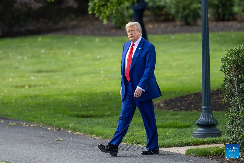 U.S. President Donald Trump walks toward the South Lawn to board Marine One at the White House in Washington, D.C., the United States, on June 20, 2025. Trump said Friday it will be difficult to request Israel stop its airstrikes in Iran, even as he pursues a diplomatic solution to end the conflict. (Xinhua/Hu Yousong)