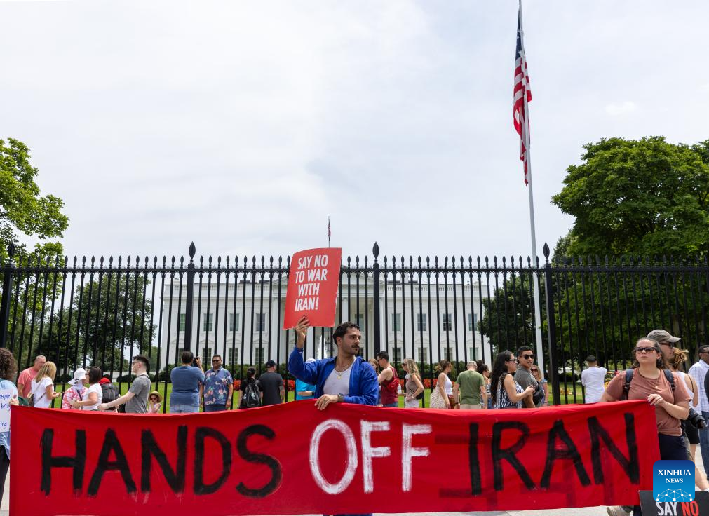 Protesters rally outside the White House to denounce U.S. air strikes on Iran's nuclear facilities, in Washington, D.C., the United States, on June 22, 2025. (Xinhua/Hu Yousong)