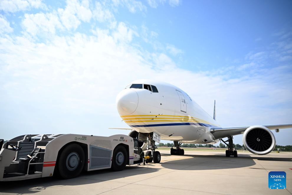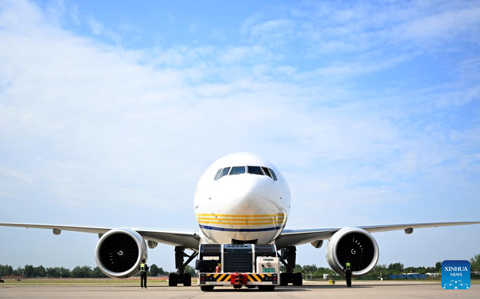 A cargo plane of China Postal Airlines from China's Zhengzhou to Luxembourg is pictured before its maiden flight at Zhengzhou Xinzheng International Airport in Zhengzhou, central China's Henan Province, June 23, 2025.